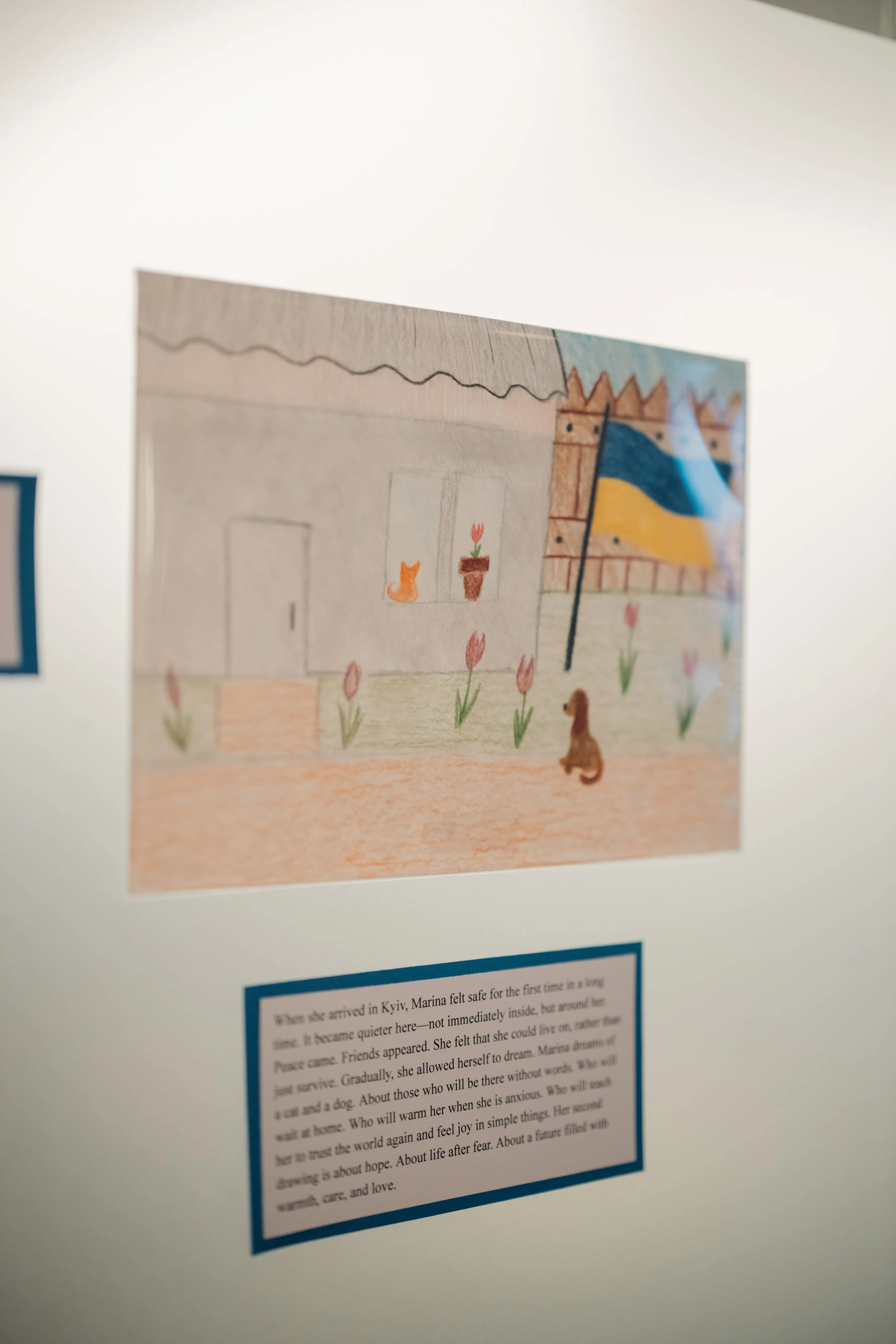 The exhibition aimed to draw attention to Ukrainian children kidnapped or forced to live under Russian control and to raise a difficult but essential question: What happens to children under Russian rule as peace talks continue? The artworks, which highlighted the stark contrast between the children’s pre-war innocence and the trauma of life under occupation, were donated by CITYarts and Save Ukraine.